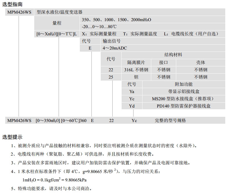 詳細(xì)信息 MPM426WS-350,MPM426WS-500,MPM426WS-1000,MPM426WS-1500,MPM426WS-2000,變送器