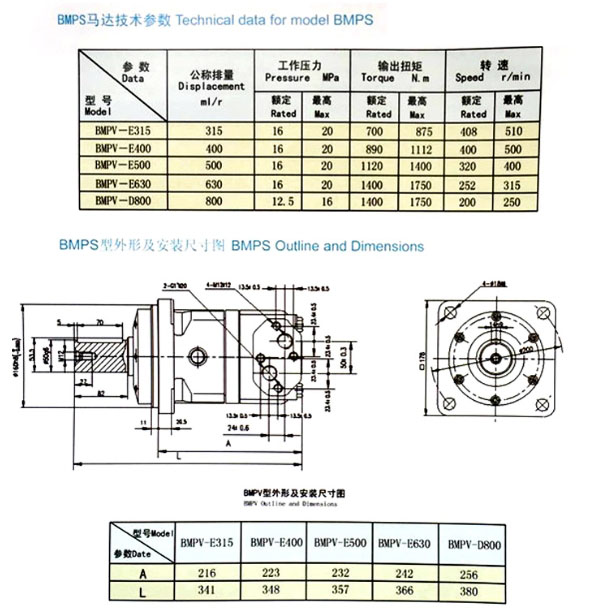 詳細(xì)信息 BMPV-E315,BMPV-E400,BMPV-E500,BMPV-E630,BMPV-E800,平面配油液壓馬達(dá)