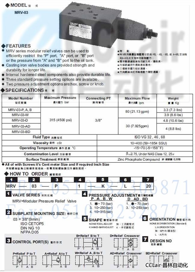 MRV-03-P,MRV-03-A,MRV-03-B,MRV-03-W,積層型溢流閥